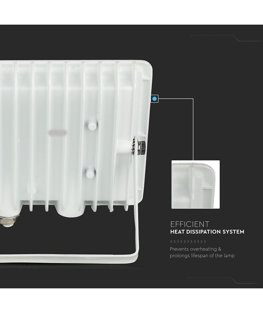 Opplev kraftig belysning med vår 50W lyskaster som er utstyrt med en lysstyrke på 4300 lumen. Med denne lyskasteren får du en høy lysspredning på 100 grader, noe som sikrer en jevn fordeling av lyset over store områder.