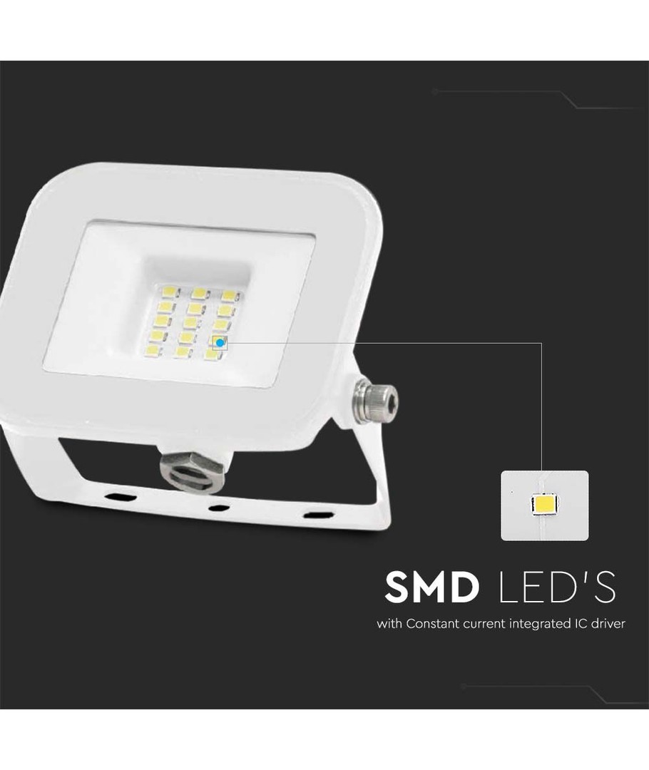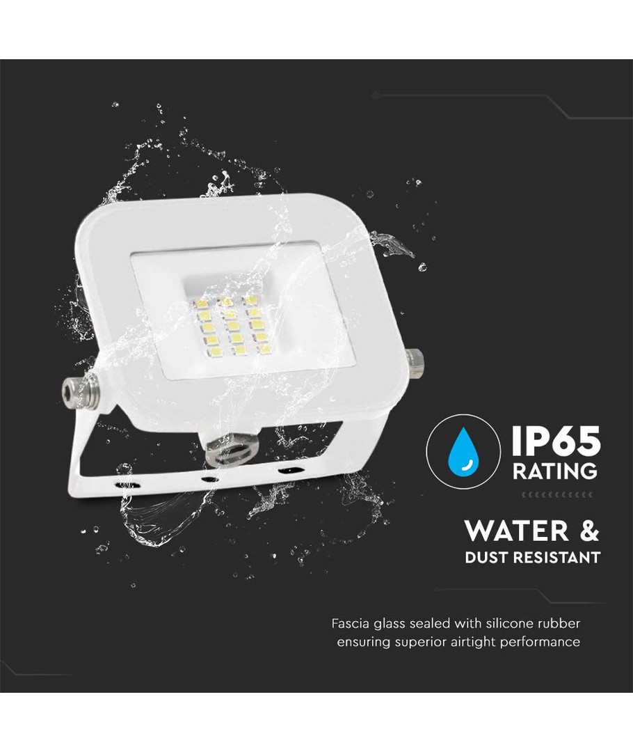 Med et slitesterkt hvitt hus og hvitt glass, er denne lyskasteren designet for å tåle tøffe værforhold. Den er klassifisert som IP65, noe som betyr at den kan motstå vannsprut og regn, og er derfor perfekt for utendørsbruk. Størrelsen på lyskasteren er 104 x 21 x 92 mm.