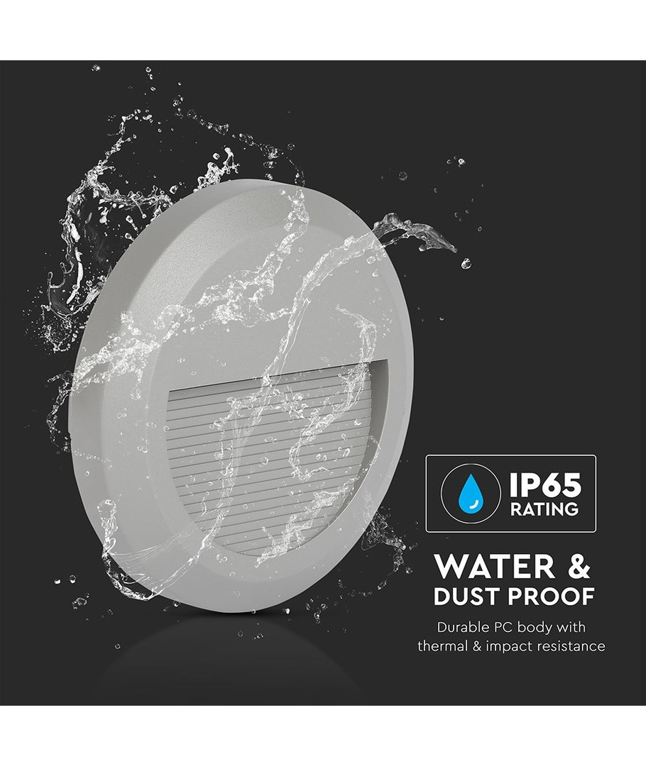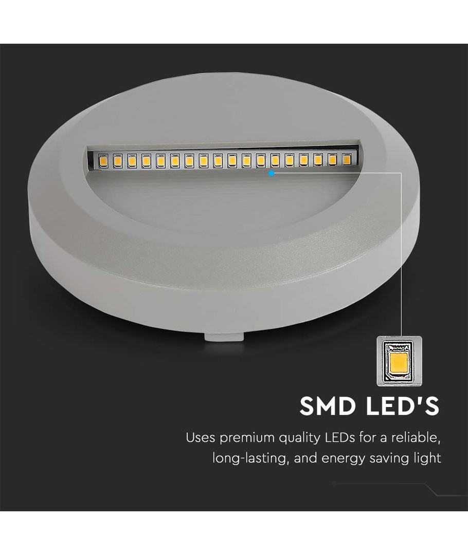 Lyset kommer med en integrert lyskilde i et diskret grått hus og en elegant rund form. Dette trappelyset er ikke bare praktisk, men en sikker måte å forbedre både estetikk og sikkerhet i hjemmet ditt.