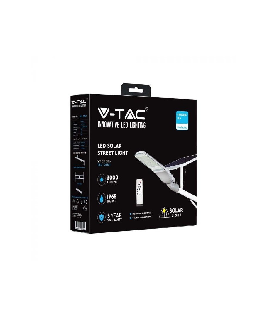 Oppgrader utendørsbelysningen din med V-Tac 50W LED Solar gatelampe og få en effektiv og energisparende løsning for å lyse veien.