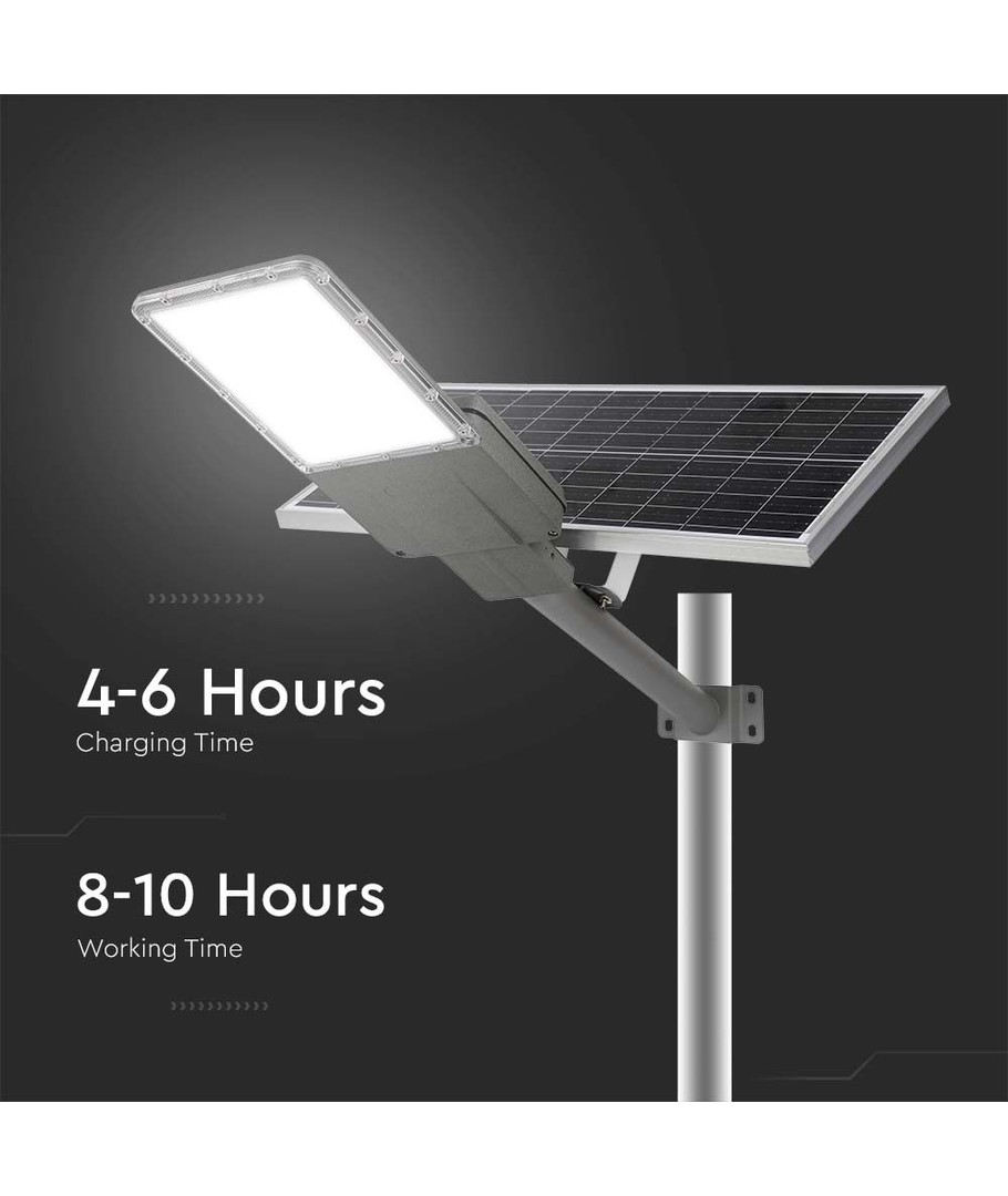 Dette er en LED Solargatelykt som er designet for å gi kraftig belysning med høy effektivitet. Med en lysstyrke på 3500 lumen og en imponerende lysspredning på 120 grader, gir denne lykten en jevn og bred belysning av området.