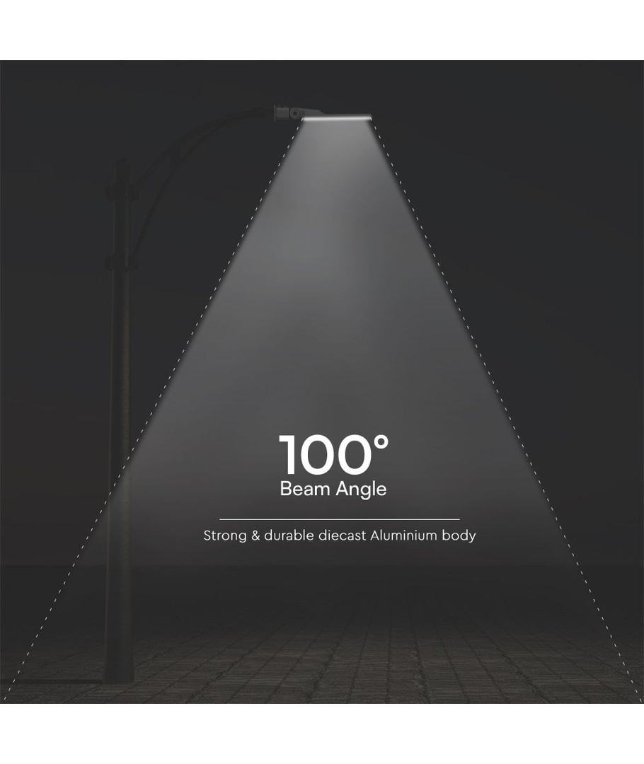 Opplev en optimal belysningsløsning med vårt 50W LED gatelys fra V-Tac. Dette produktet er designet for å gi 4700 lumen med en høy lysspredning på 100 grader, som sikrer en jevn fordeling av lyset.