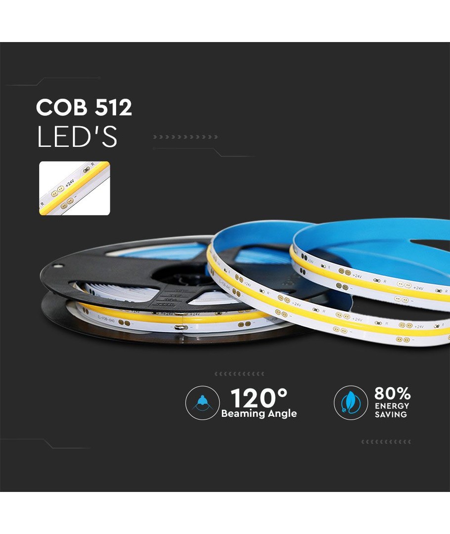 5m 12W/m COB-LED strip, RA90 - 24V, IP20, 512 LED pr. meter, 4000K/6500K samsung Utvid