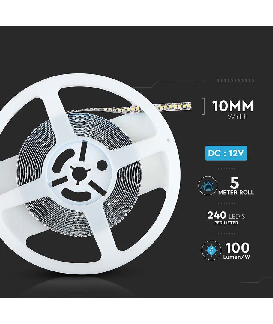 Opplev overlegen belysning med vår LED strip som gir 240 LED per meter og en total effekt på 20W/m. Denne LED stripen gir en høy lysstrøm og er ideell for en rekke forskjellige bruksområder.