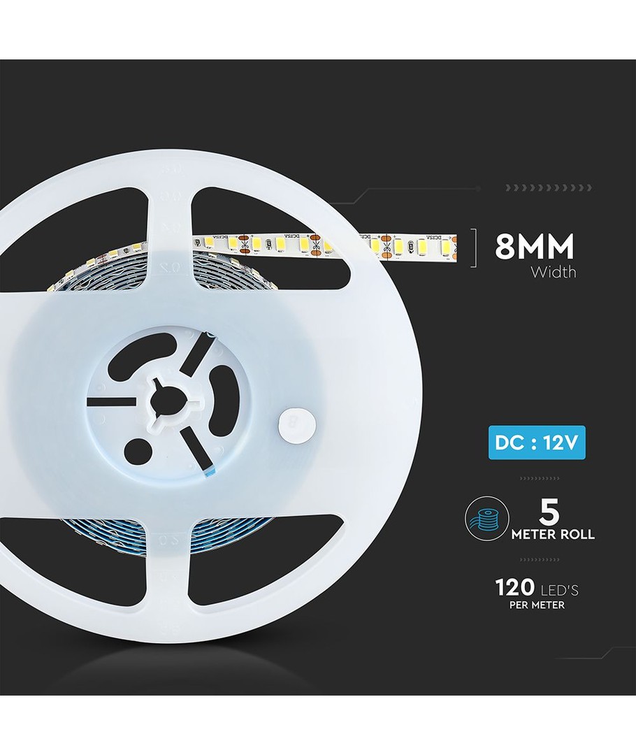 Opplev enestående belysning med vår LED stripe på 18W som gir en imponerende lyskvalitet. Dette produktet er utstyrt med 120 LED og gir et lys med en RA-verdi på 90-95, noe som betyr at det produserer et levende og naturlig lys. Dette gjør det ideelt for bruk der fargegjengivelse er kritisk.
