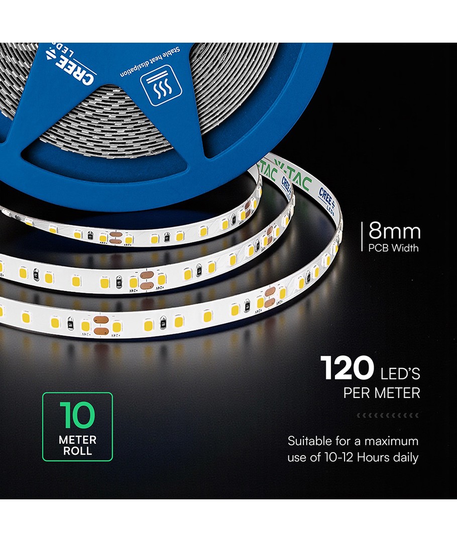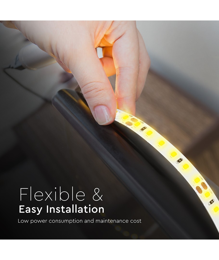 Med en høy spredning på 120 grader, garanterer dette LED-lysbåndet en jevn fordeling av lyset. Denne egenskapen skaper et optimalt lysmiljø som er perfekt for alt fra boliger til kommersielle lokaler.