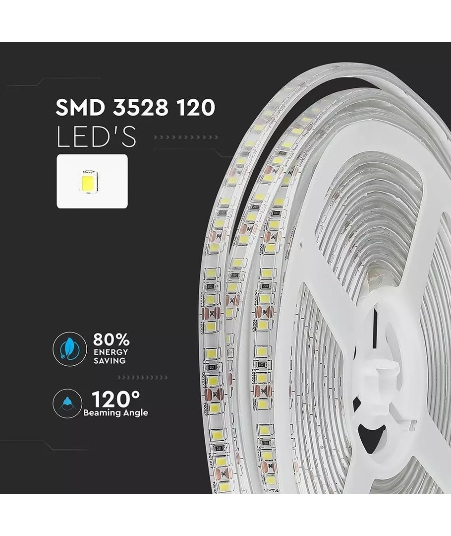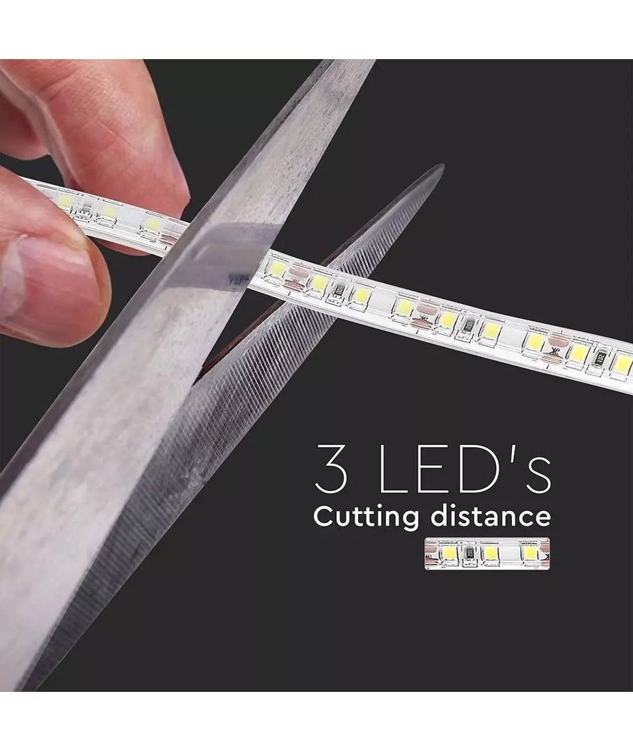 Med IP65-klassifisering er LED-stripen designet for å tåle vannsprut og regn, noe som gjør den ideell for utendørs installasjoner.