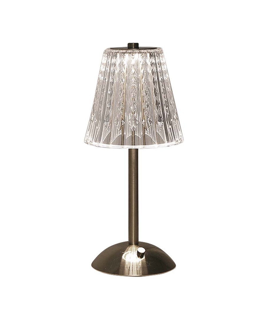 Med en størrelse på 295 x 130 mm, passer denne lampen inn på de fleste bord uten å ta for mye plass. Designet i nikkel med sandfarget finish gir et moderne preg som vil komplimentere ethvert rom.