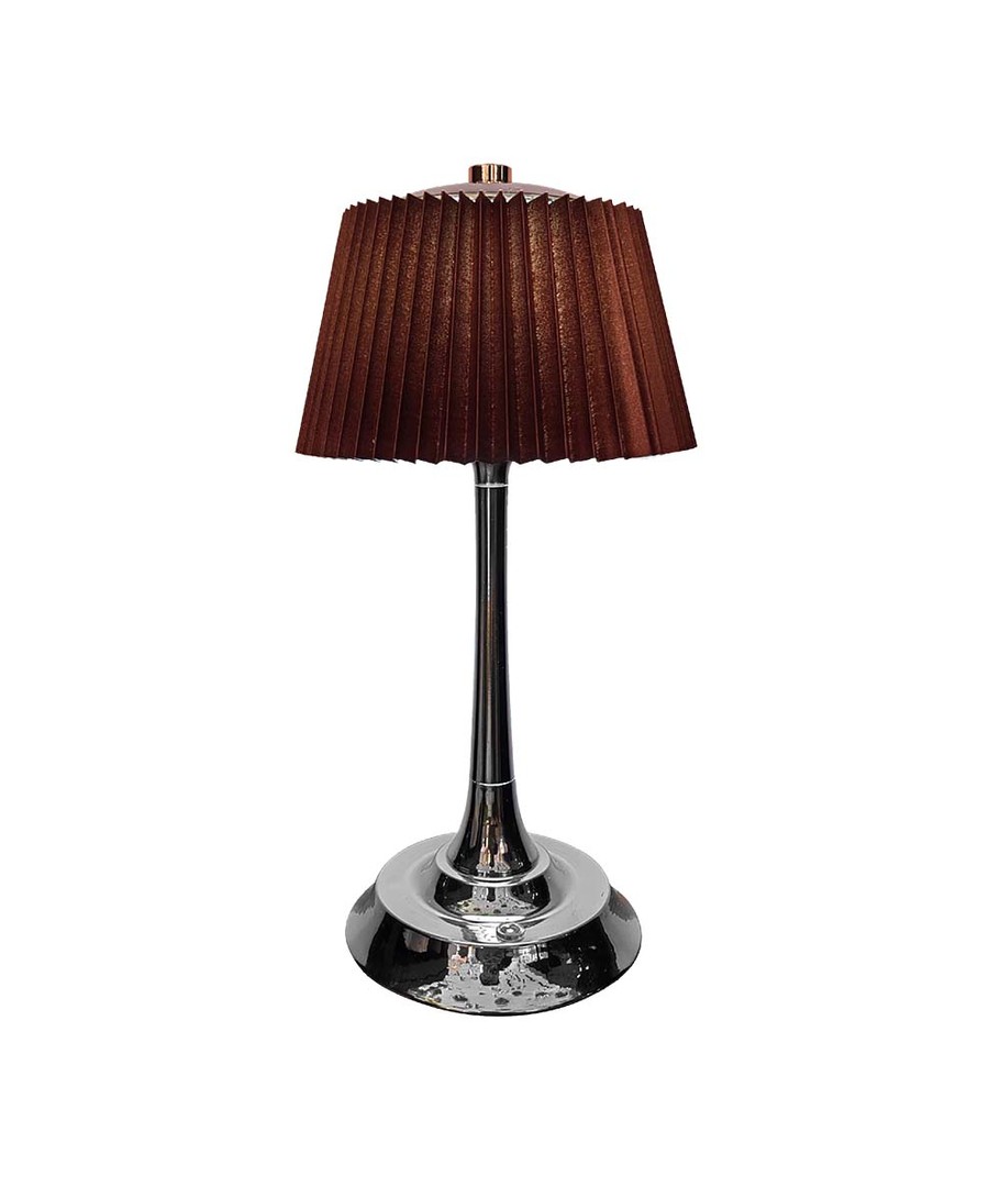 Denne bordlampen har et raffinert design med en elegant krom og brun finish, som gjør den til et stilig tillegg til enhver innredning. Med dimensjoner på 280 x 140 mm passer den enkelt på skrivebordet, nattbordet eller i stuen.