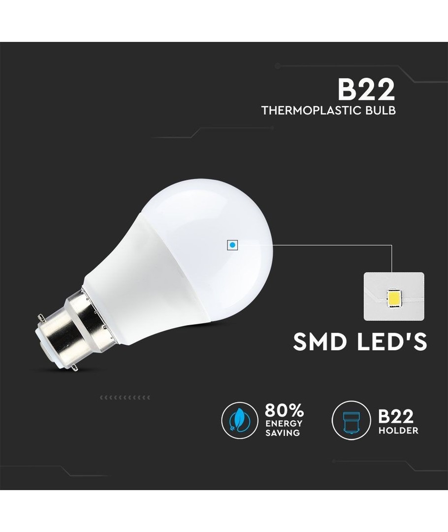 Vakker 9W B22 LED-pære fra V-tac.