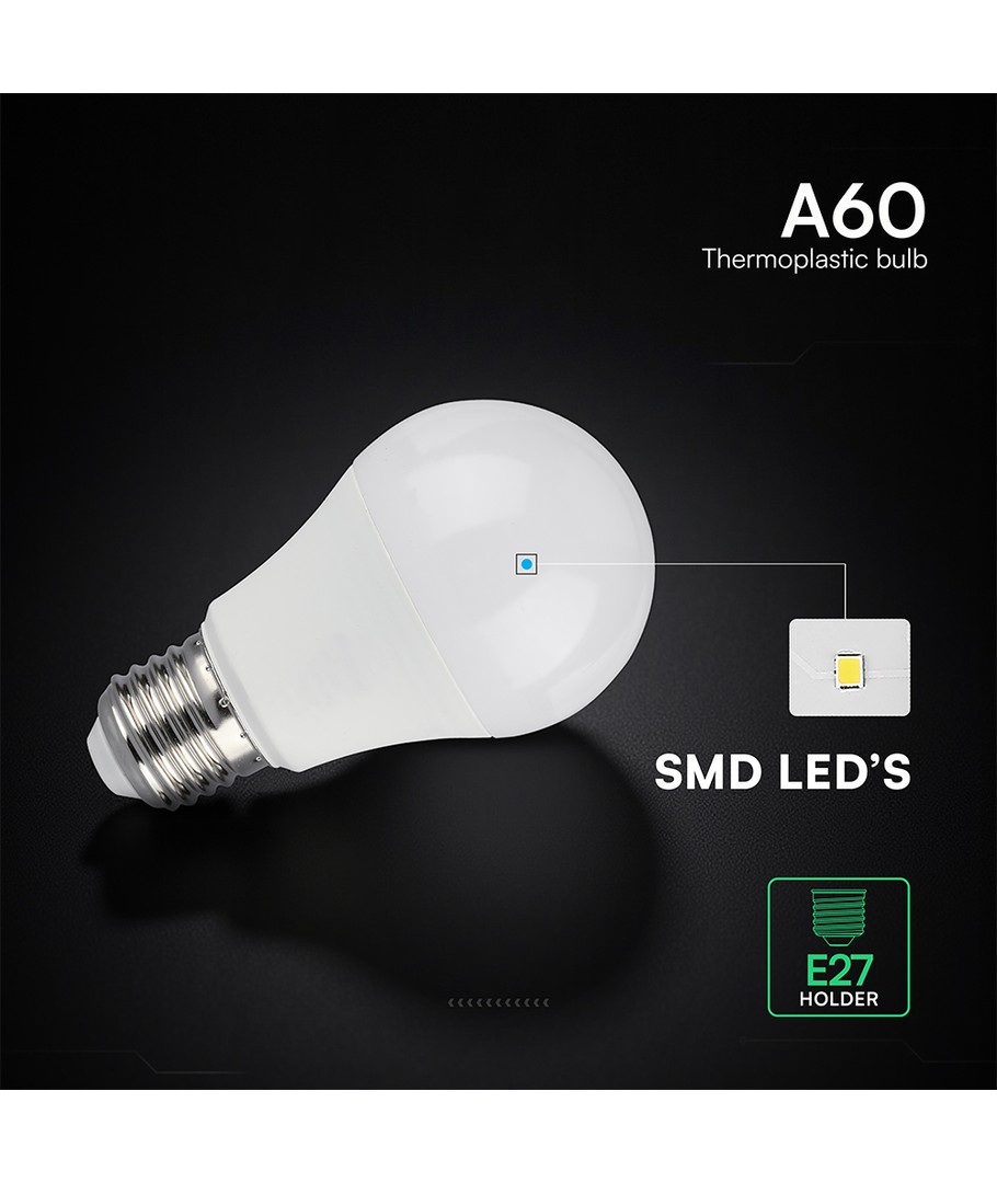 Oppgrader belysningen hjemme med denne A60 VT-2099 LED-pæren som kombinerer energieffektivitet med fremragende lyskvalitet. Med et strømforbruk på kun 8,5W og en E27 stor fatning, er denne LED-pæren et utmerket valg for de fleste lampeholdere i hjemmet.