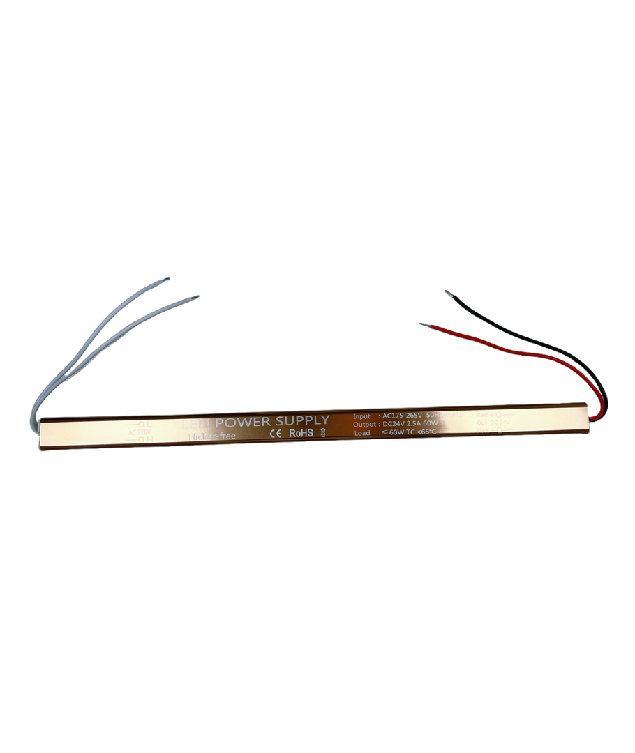 Den nye 60W strømforsyningen 24V DC - 2,5A i en ekstra tynn slank modell leverer pålitelig kraft uten å flimre og er perfekt for både innendørs og utendørs bruk takket være sin IP67-sertifisering.
