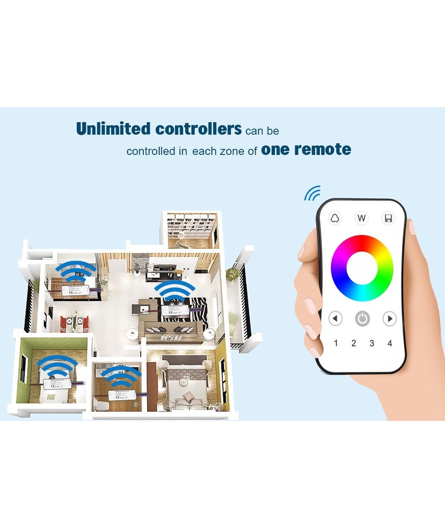 Styr 12V, 24V, 230V og dimming, CCT, RGB - alt med samme fjernkontroll.