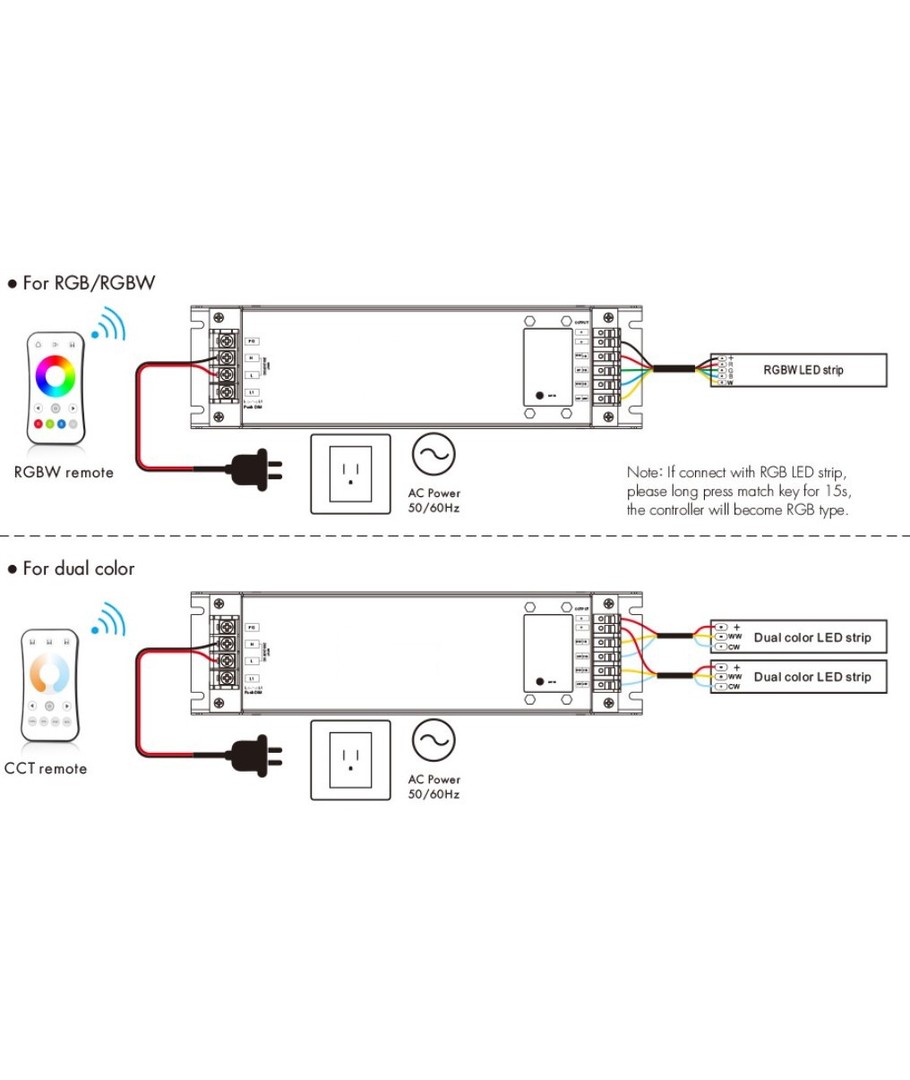 Styr 12V, 24V, 230V og dimming, CCT, RGB - alt med samme fjernkontroll.
