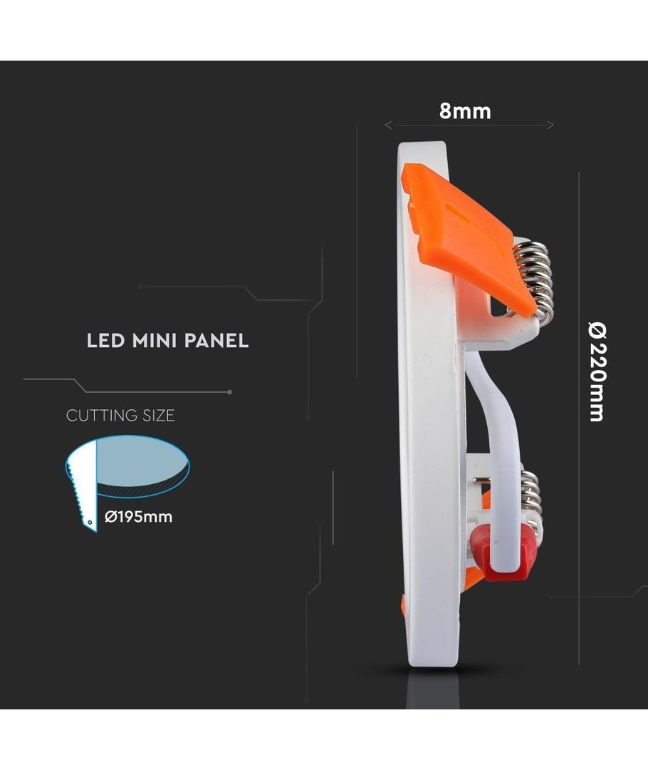 V-Tac LED panel Ø20cm 29W har en dimensjon på 27 x Ø200 mm og en hul størrelse på 190 mm. Det har en IP20-klassifisering, som betyr at det ikke er vannbestandig og bør ikke brukes i fuktige områder. LED-panelet har også en integrert lyskilde, noe som gjør det enkelt å installere og bruke.