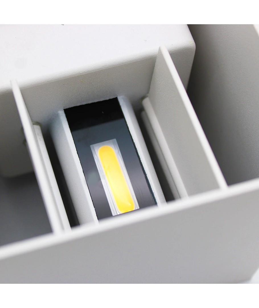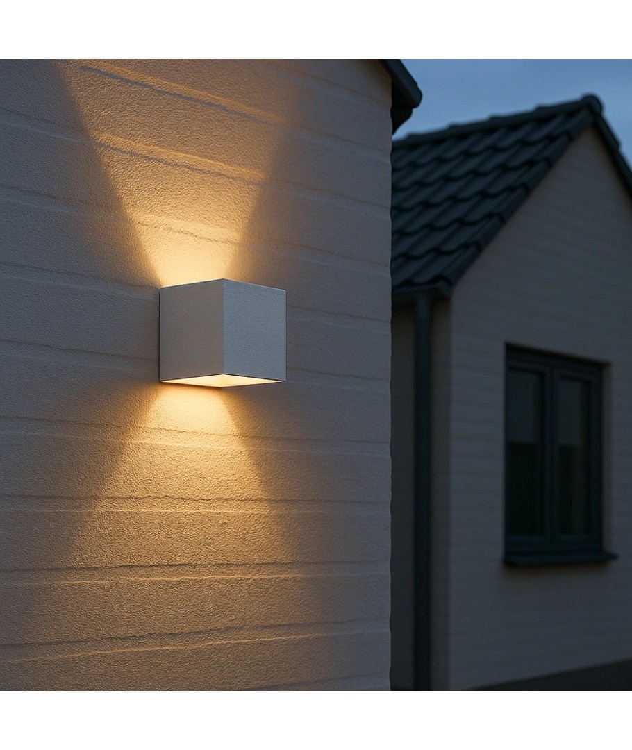 Denne hvite opp/ned vegglampen fra danske LEDlife er designet med fokus på estetikk og kvalitet. Vegglampen har justerbar spredning (10-120 grader) i både topp og bunn. Denne funksjonen er svært populær fordi den ofte hever bygningens utseende og gir et moderne og elegant uttrykk. Lampen er vanntett og kan derfor brukes både inne og ute.