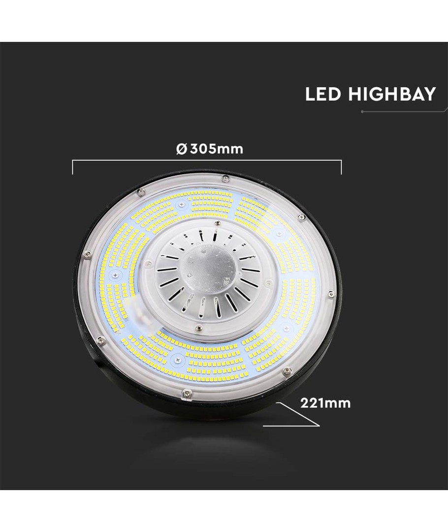 Som en del av V-Tac Pro-serien, kommer denne LED Highbay med en pålitelig MeanWell driver og har integrert lyskilde. Med IP65-sertifisering tåler lampen vannsprut og regn, noe som gjør den ideell for både innendørs og utendørs bruk.