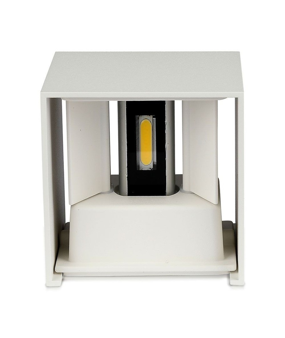 Denne firkantede vegglampen er den perfekte løsningen for utendørs belysning. Med et effektivt forbruk på 12W, er den både energibesparende og lyssterk. Lampen må kobles til en 230V forsyning og er utstyrt med en integrert lyskilde.