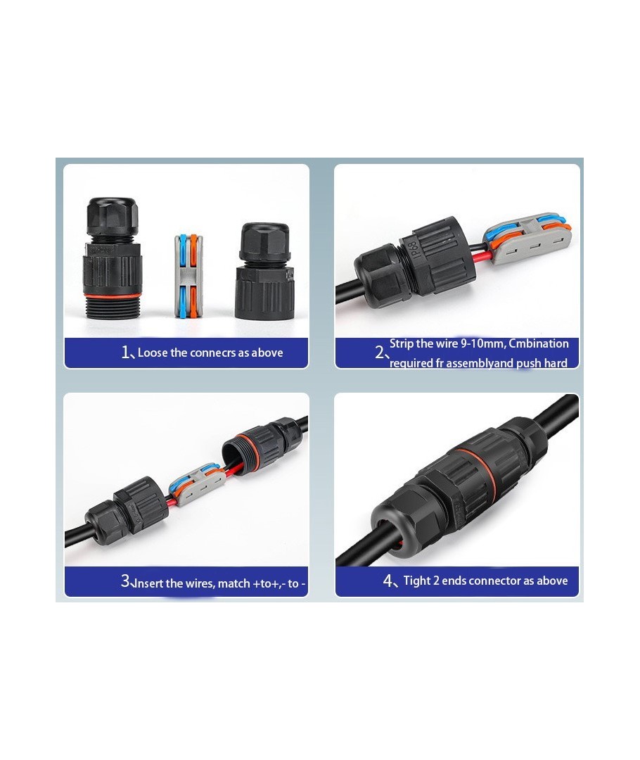 Med en IP67 vanntett klassifisering er denne koblingsboksen spesielt konstruert for å motstå tøffe værforhold. Dette betyr at den er helt støvtett og kan tåle nedsenking i vann i opptil 1 meter i kortere perioder. Vær imidlertid oppmerksom på at den ikke er designet for å være under vann i lengre tid.