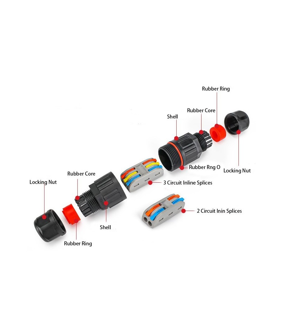 IP68 vanntett, sort, for skjøting av ledninger, 3-leder