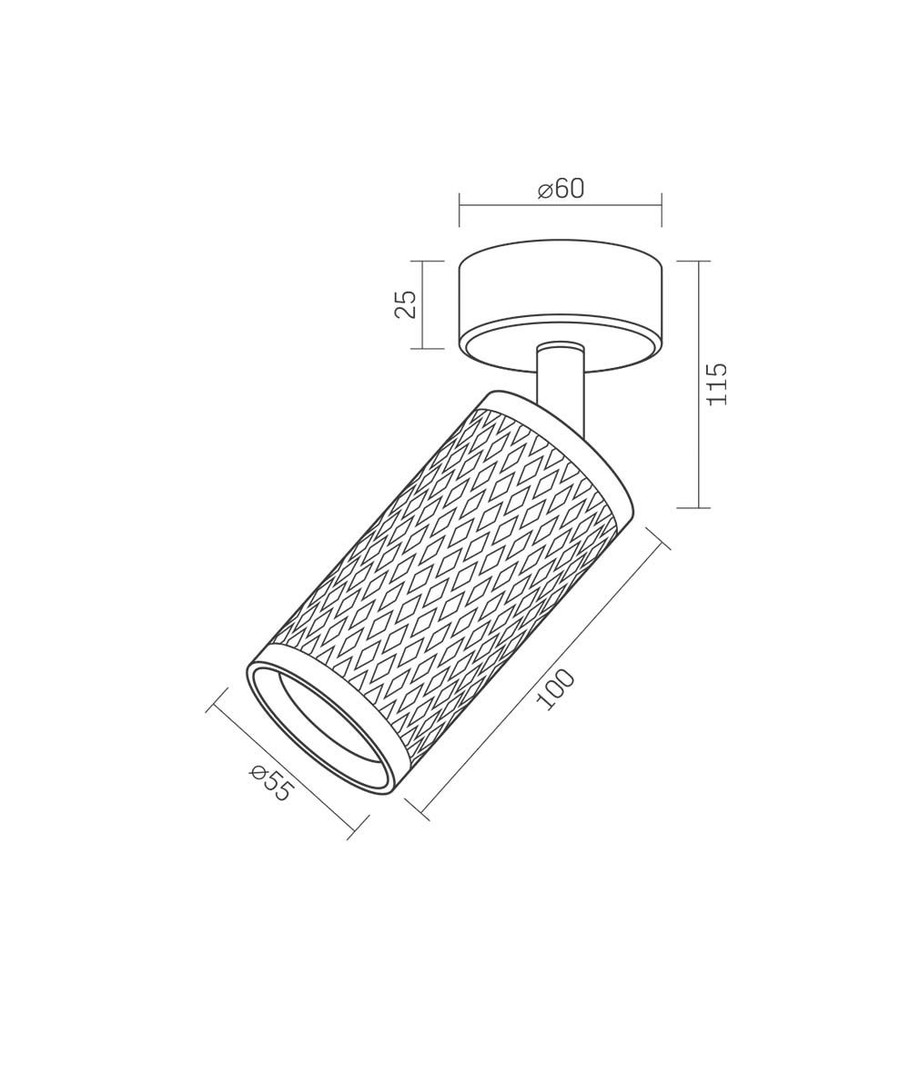Armaturet har en kompakt størrelse på 55 x 100 x 55 mm, noe som gjør det ideelt for mindre rom eller områder hvor det kreves subtil belysning.