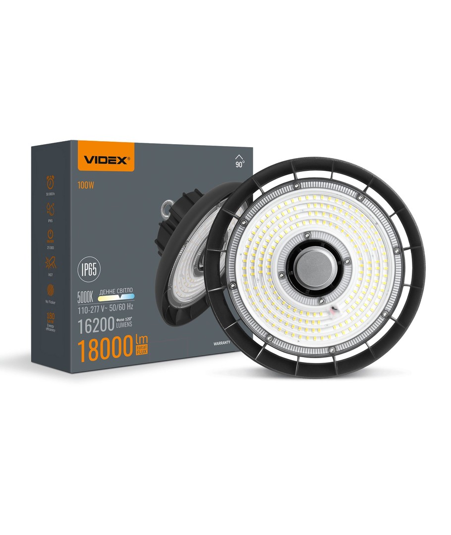 Med en lysstyrke på 16 200 lumen og en spredningsvinkel på 90 grader, gir denne high bay-lampen en jevn og bred lysdekning, ideell for store områder.
