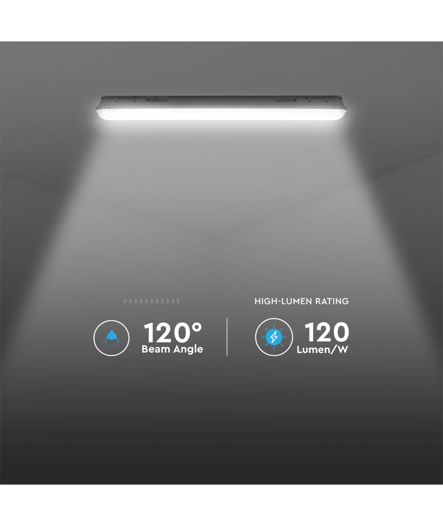 Dette 120 cm armaturet er ideelt for både innendørs og utendørs bruk takket være sitt vanntette design og IP65-klassifisering. Det betyr at det er motstandsdyktig mot vannsprut og regn, og er perfekt for områder som krever ekstra beskyttelse mot fuktighet.