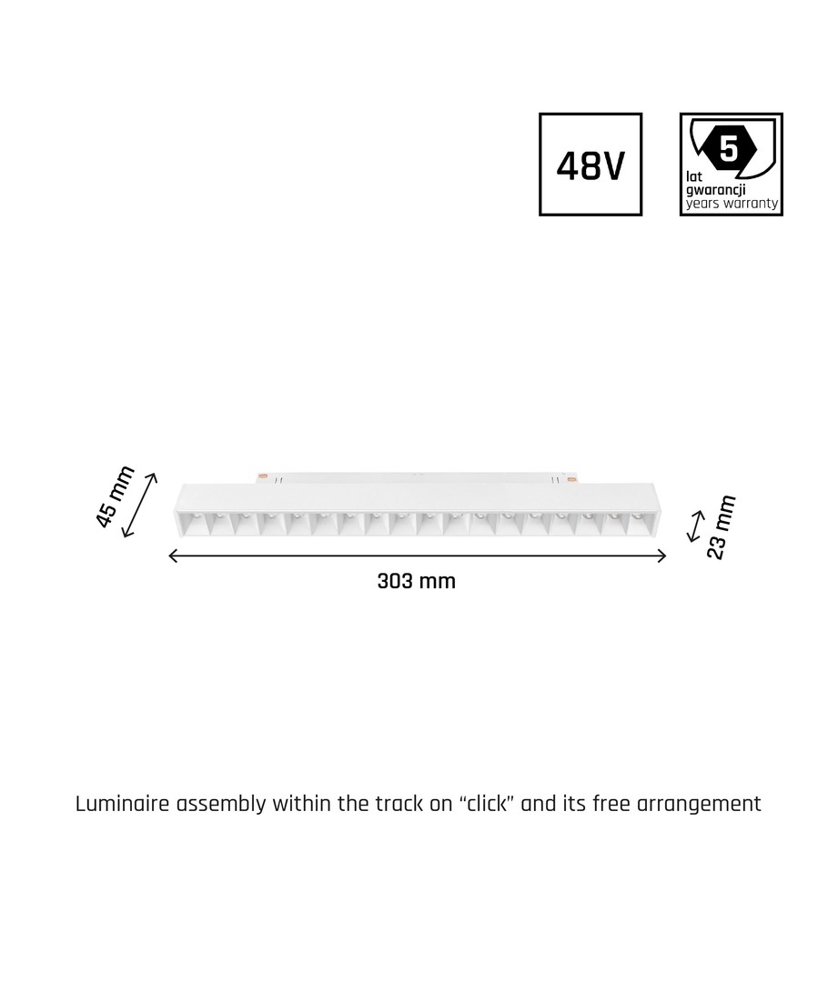 Med dimensioner på 303 x 23 x 42 mm er dette lys designet til at være kompakt og nemt at integrere i forskellige miljøer. Det har en IP20 klassificering, hvilket betyder, at det ikke er modstandsdygtigt over for vand.