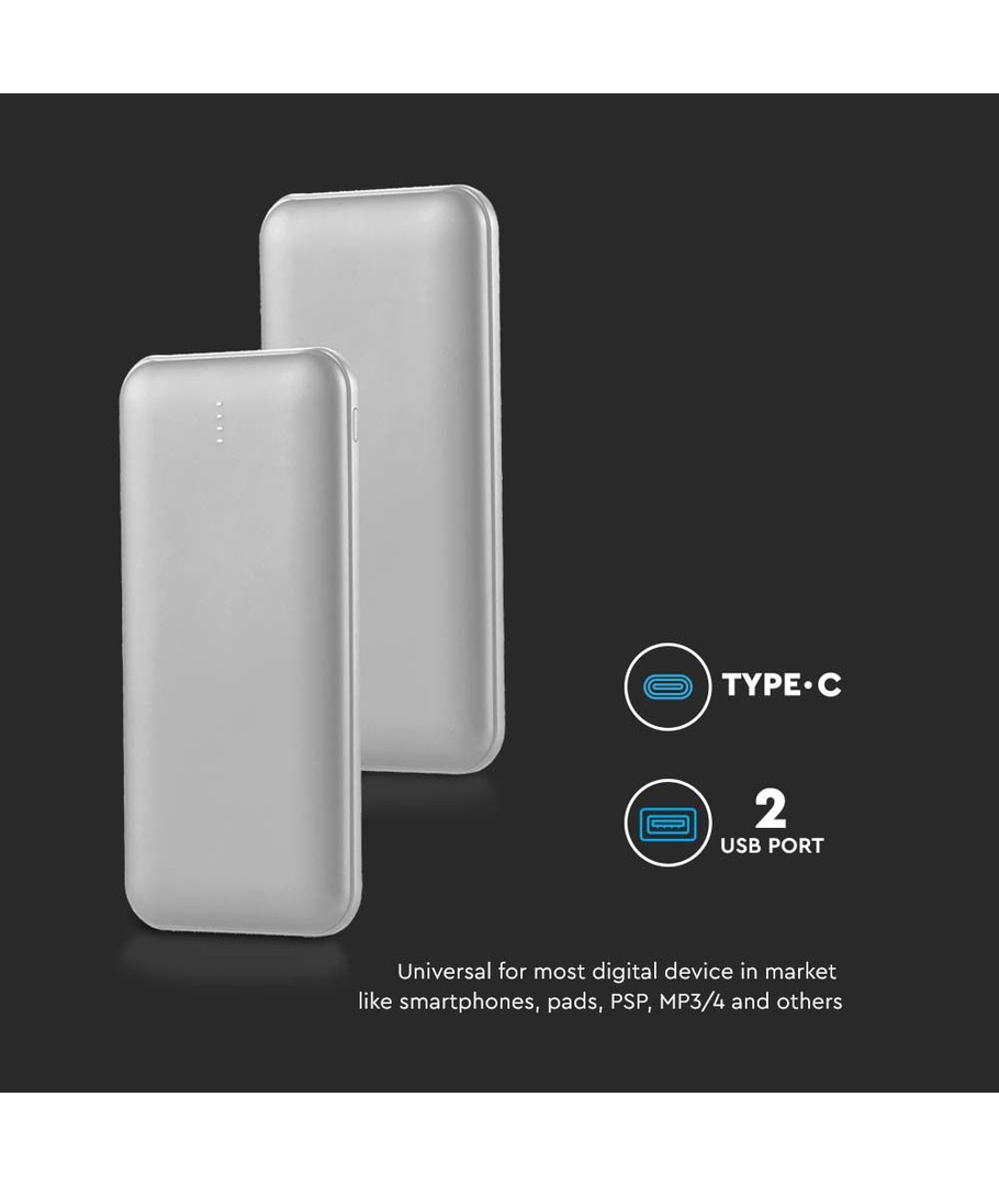 10,000mAh Powerbank i sølv er den ideelle løsning til at holde dine enheder opladet på farten.