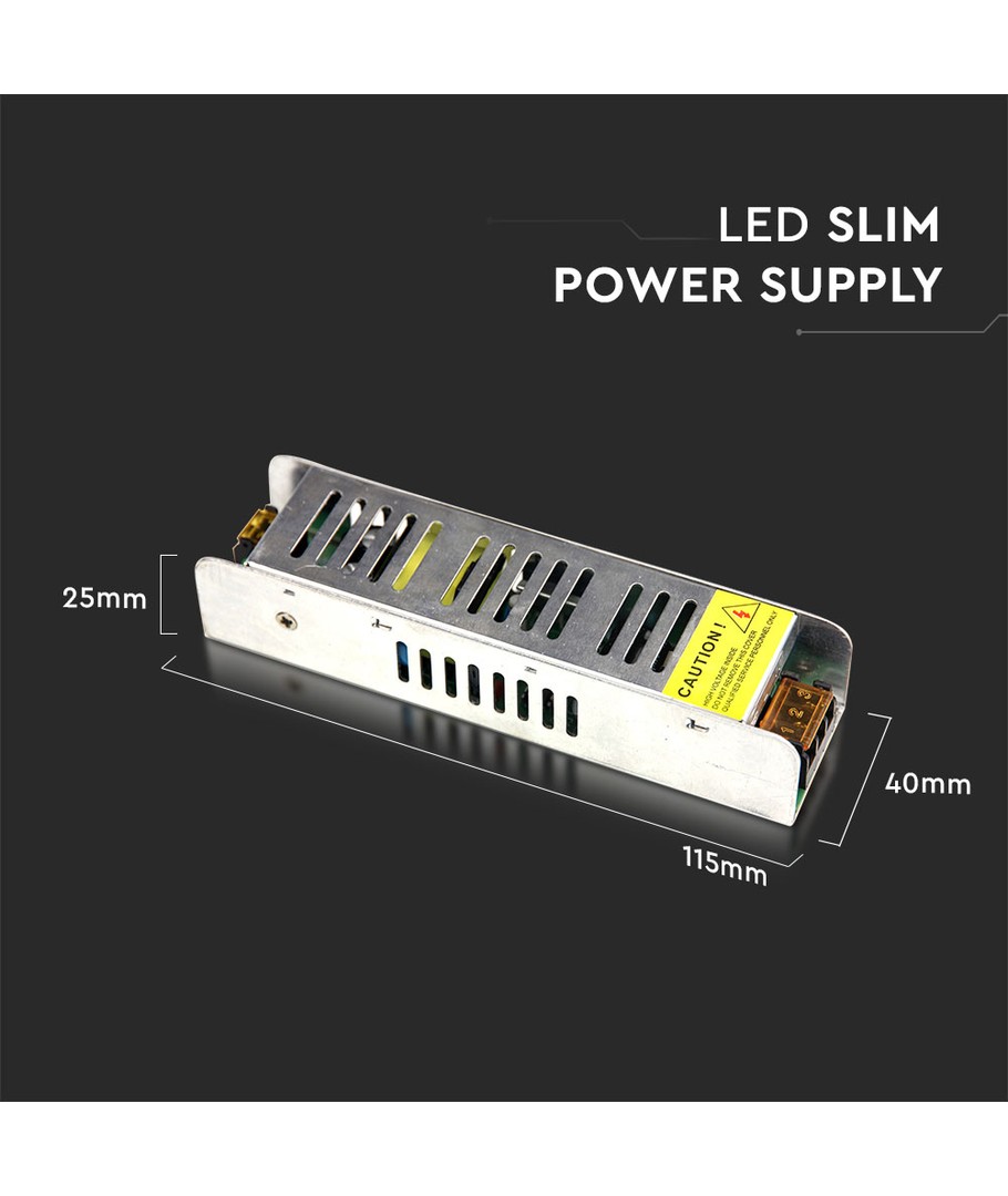 - Leverer en effekt på 25W og en udgangsspænding på 12V DC.