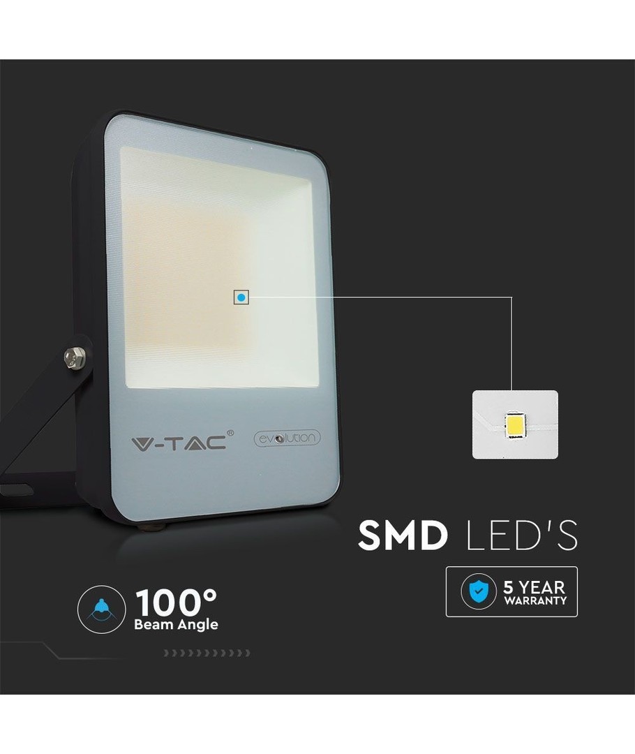 Den robuste V-Tac Evolution serie sikrer holdbarhed, og med en IP65 klassificering, kan du være sikker på, at projektøren modstår vandsprøjt og regn, hvilket gør den ideel til udendørs anvendelse. Og med 5 års producent garanti er du godt dækket ind.