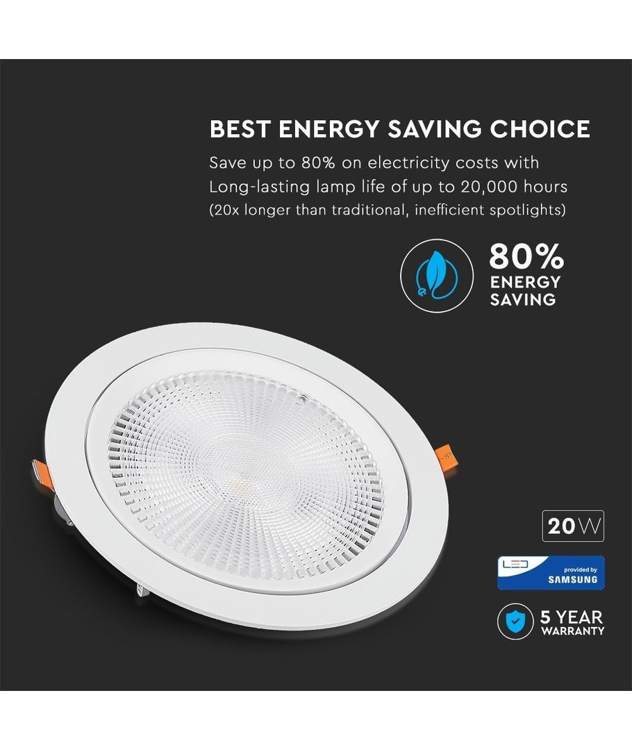 Spotlighten er udstyret med en Samsung LED chip, der sikrer lang holdbarhed og konstant høj ydeevne. Du får også en 5 års producentgaranti, hvilket giver ekstra tryghed og sikkerhed ved din investering.