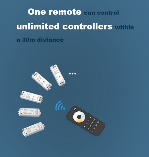 Contrôlez 12V, 24V, 230V & variation, CCT, RGB – tout avec la même télécommande.