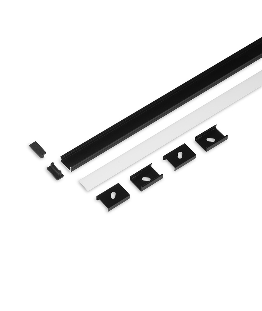 2m sæt BEGTON12 + J SLIDE - Sort anodiseret er et alsidigt aluprofilsæt til LED strips i elegant design.