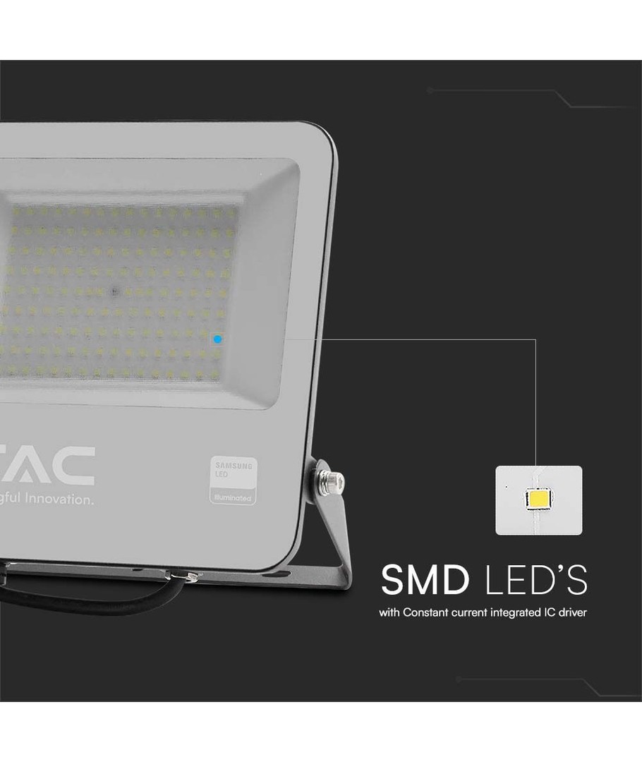 Med en 5 års producentgaranti kan du stole på, at V-Tac 100W LED projektøren vil levere pålidelig belysning, uanset hvor du vælger at bruge den. Denne robusthed og sikkerhed er yderligere understøttet af de højkvalitets komponenter, såsom Samsung LED chippen, der er indbygget i projektøren.