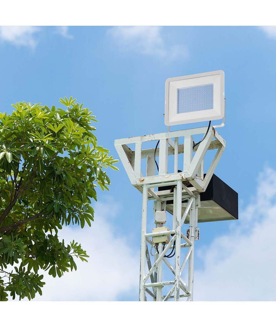 Takket være en høj IP65 klassificering er denne projektør ideel til udendørs installationer. Den tåler både vandstænk og regn, hvilket gør den til et perfekt valg for alle, der har brug for pålidelig udendørs belysning.