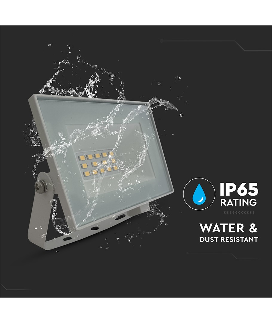 Denne LED projektør er ideel til både indendørs og udendørs brug takket være dens IP65 klassificering, som gør den i stand til at modstå vandstænk og regn. Med en effekt på 10W leverer den en stærk lysstyrke på 850 lumens, hvilket gør den perfekt til effektiv belysning af både private og professionelle arbejdsområder.