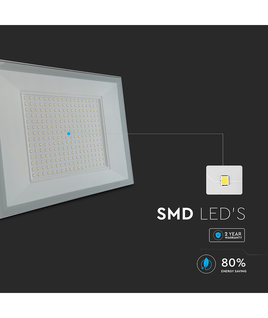 Den kraftfulde LED projektør med 200W effekt er designet til at opfylde både professionelle og private belysningsbehov. Med en lysstyrke på 19200 lumens og en høj spredning på 110 grader sikrer denne projektør en jævn og omfattende belysning, ideel til større områder.