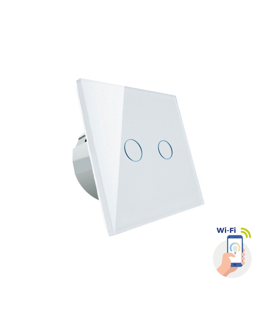 Afbryderens design i hvidt glas sikrer et stilfuldt og moderne udtryk, der passer ind i ethvert hjem.