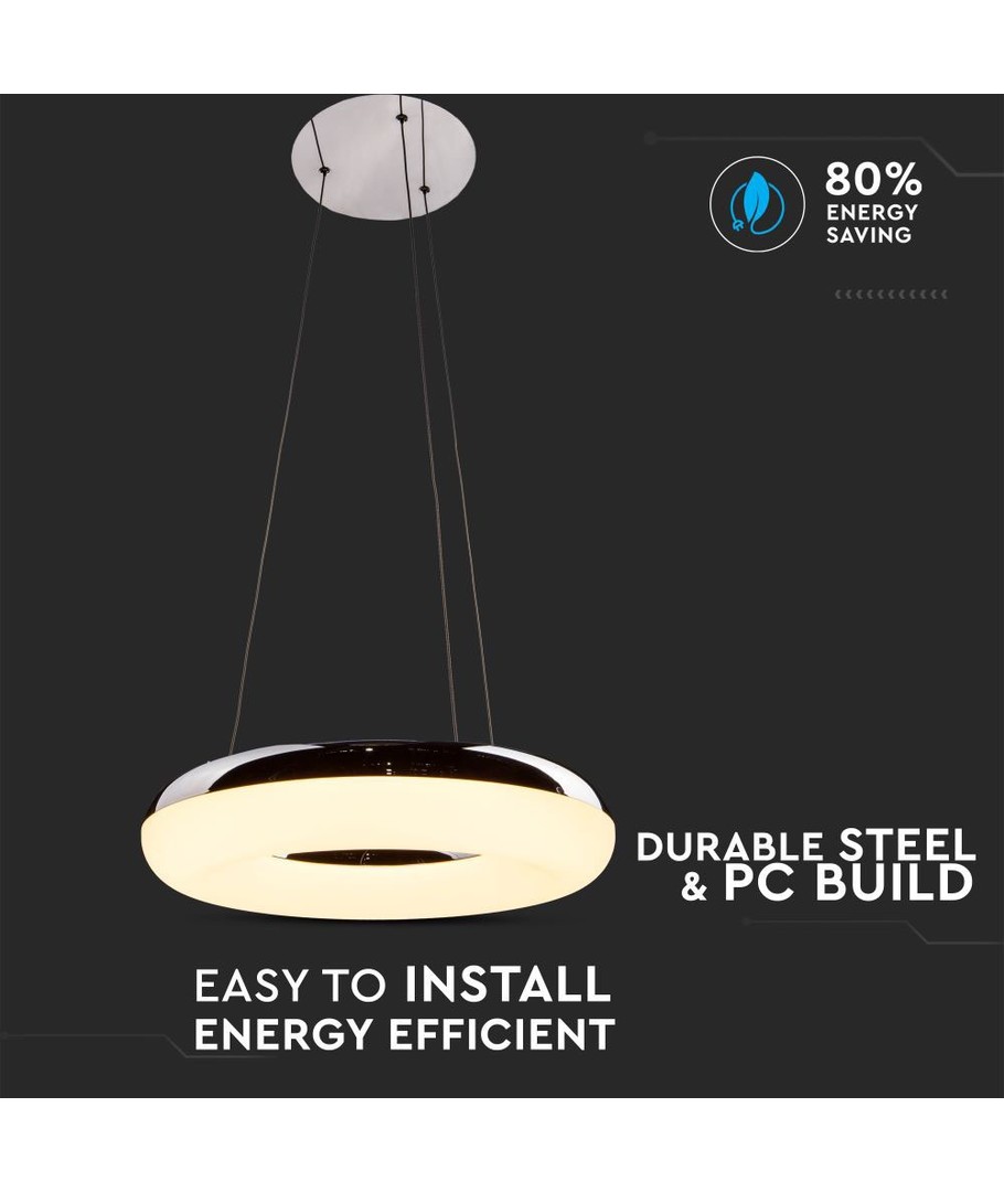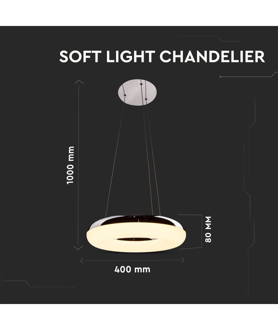 Lysekronen udsender varm hvidt lys, der skaber en afstressende og hyggelig stemning i ethvert rum. Med en lysstyrke på 2800 lumens og en høj spredning sikres en jævn fordeling af lyset, hvilket gør den ideel til både stue, spisestue og andre opholdsrum.