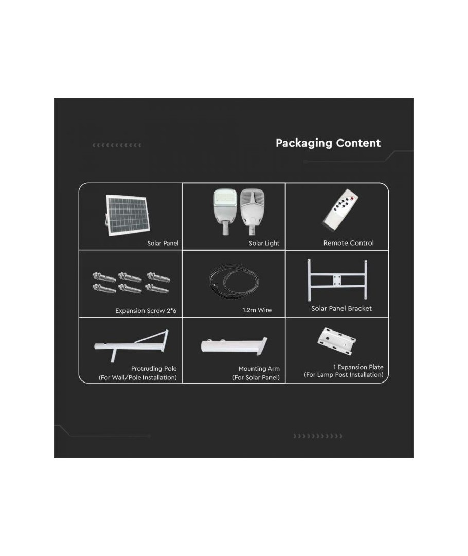 Oplev kraftfuld og miljøvenlig belysning med vores V-Tac 50W Solcelle Gadelampe LED. Denne innovative lampe tilbyder en kombination af højlyskvalitet, robust design og bekvemmelighed, der perfekt imødekommer dine udendørs belysningsbehov.