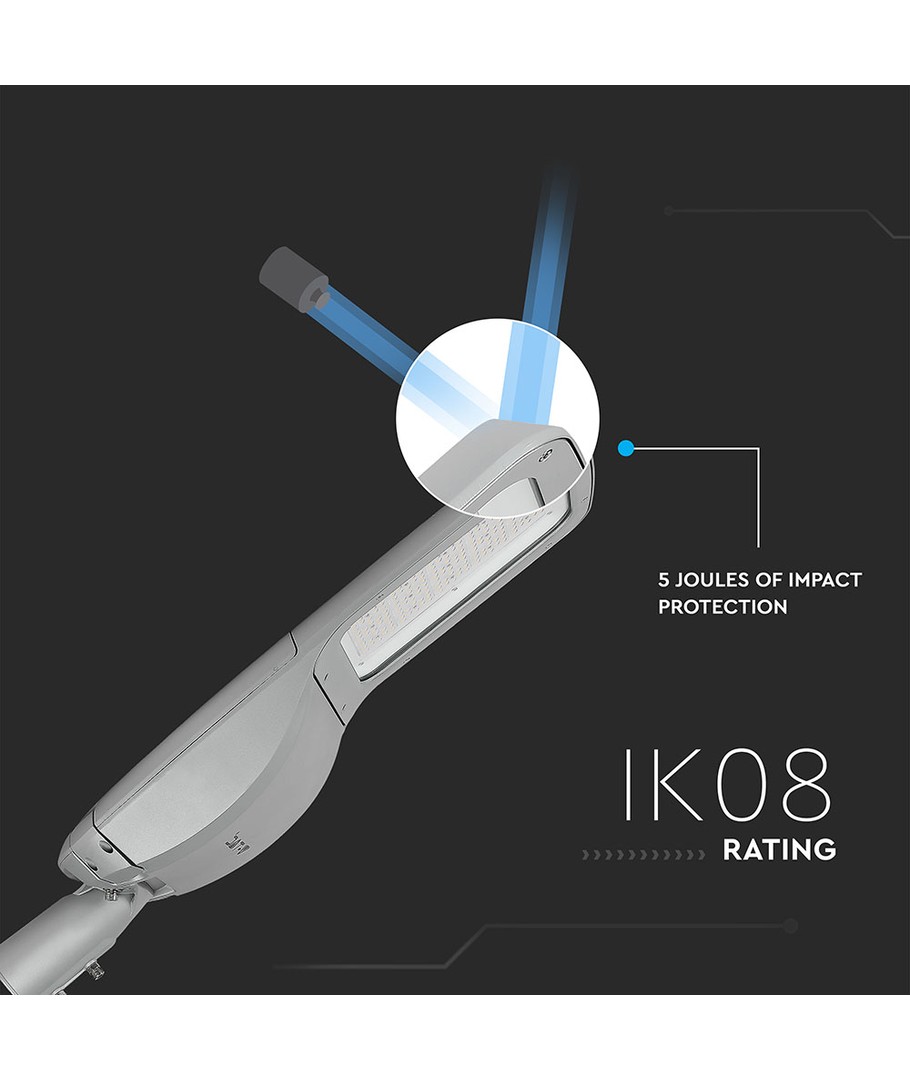 Den neutrale hvide lysfarve uden blå eller gule toner sørger for naturlig belysning af omgivelserne, hvilket gør denne LED gadelampe til det ideelle valg for dem, der søger effektivitet og kvalitet i en udendørs belysningsløsning.