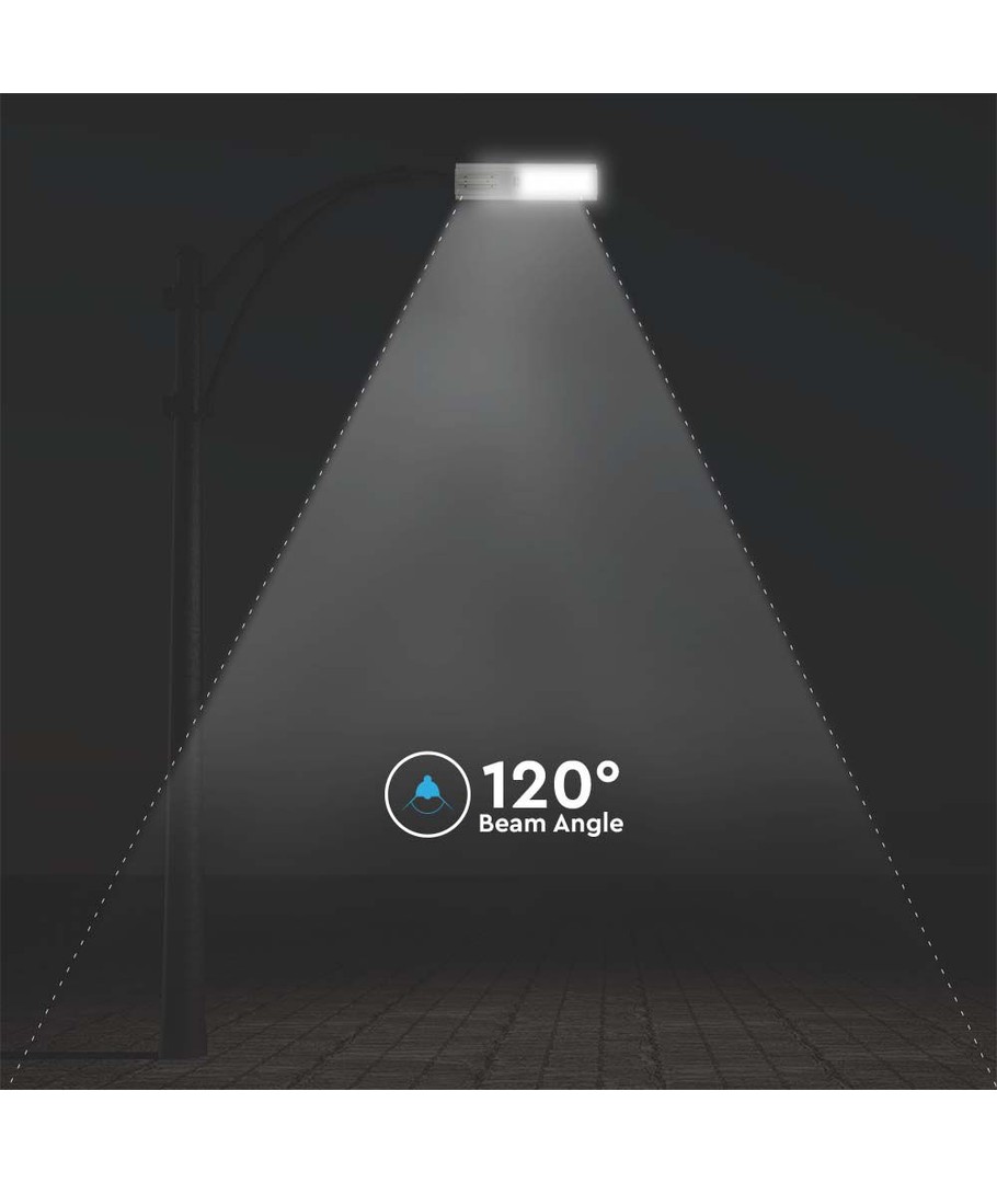 Med en høj spredning på 120 grader distribuerer den lyset ensartet, hvilket gør den ideel til oplyste stier, parkeringspladser og andre offentlige områder.