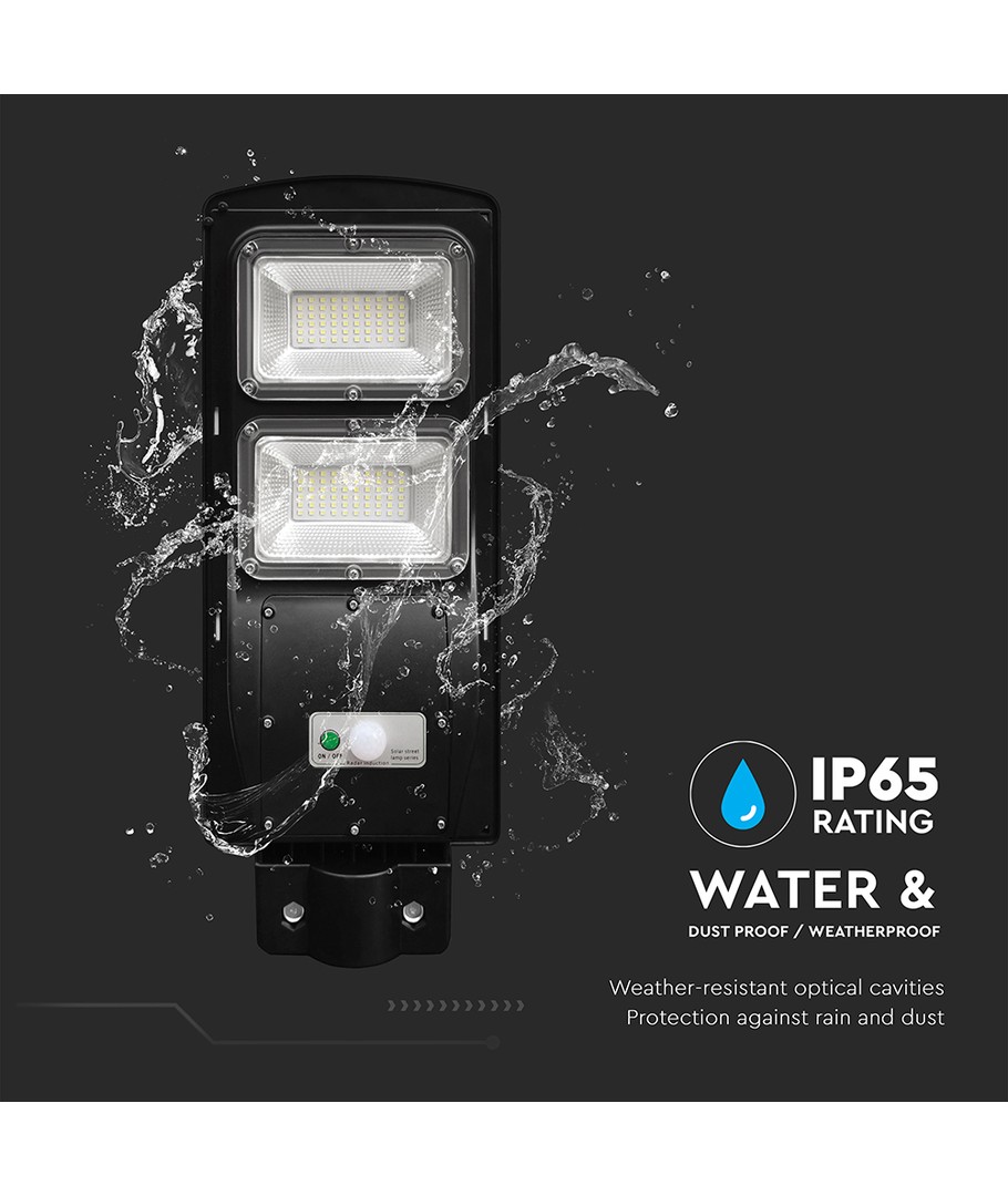Det stilfulde sorte hus og de holdbare materialer sikrer lang levetid og pålidelig ydelse, uanset vejret. Med St120 VT LED Solar Streetlight kan du skabe tryghed og forbedre æstetikken i dine udendørs områder, mens du sparer energi og skåner miljøet.