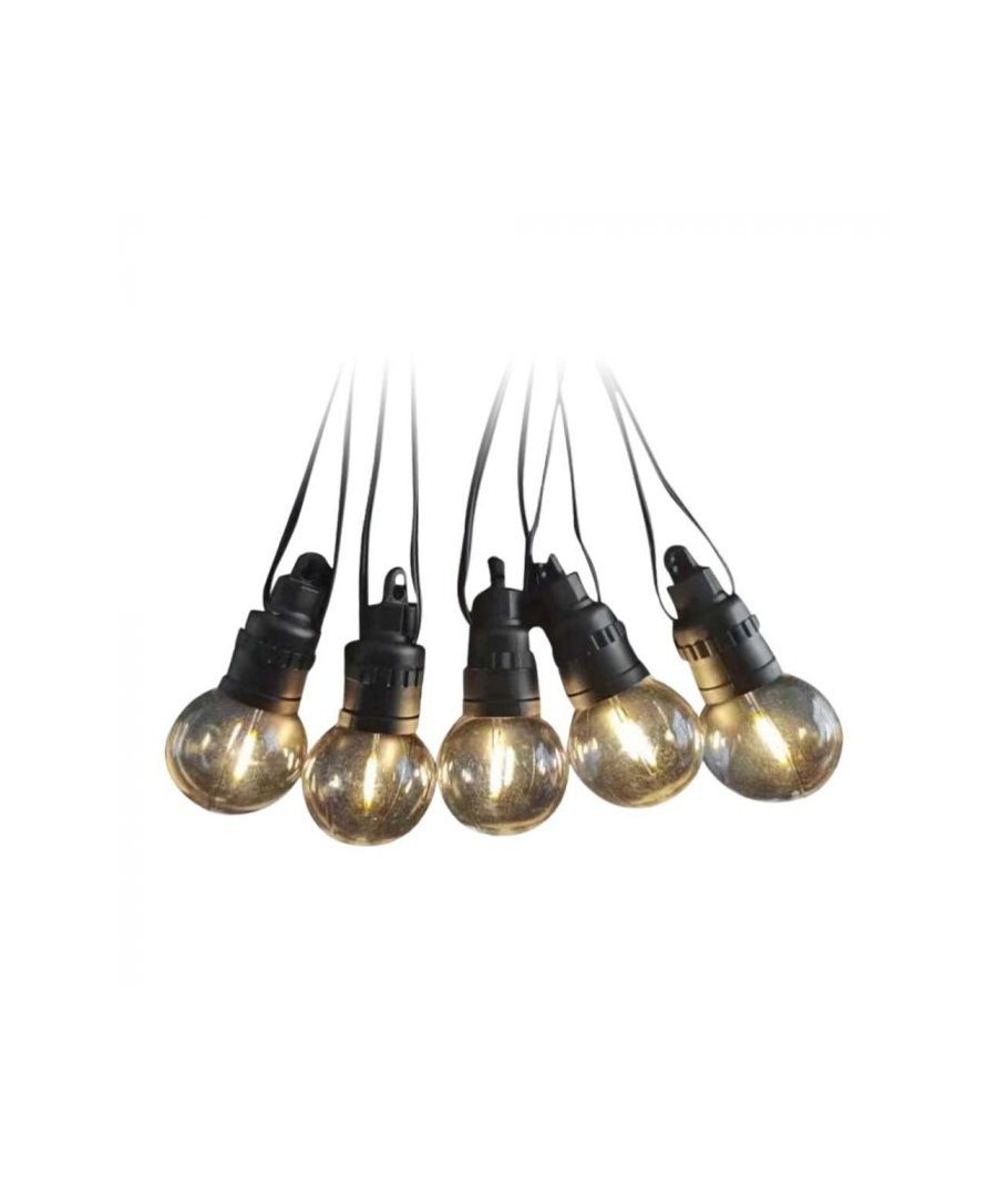 Lyskæden er det perfekte valg til at oplyse din terrasse eller udestue. Denne lyskæde er designet med 10 varm hvide pærer, der skaber en hyggelig atmosfære. Med en længde på 12 meter har du rigelig lys til at dække dit udendørsområde.