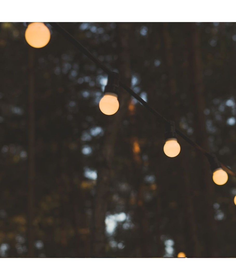 10 meter stænktæt lyskæde med 20 stk. 0,5W varm hvide pærer.