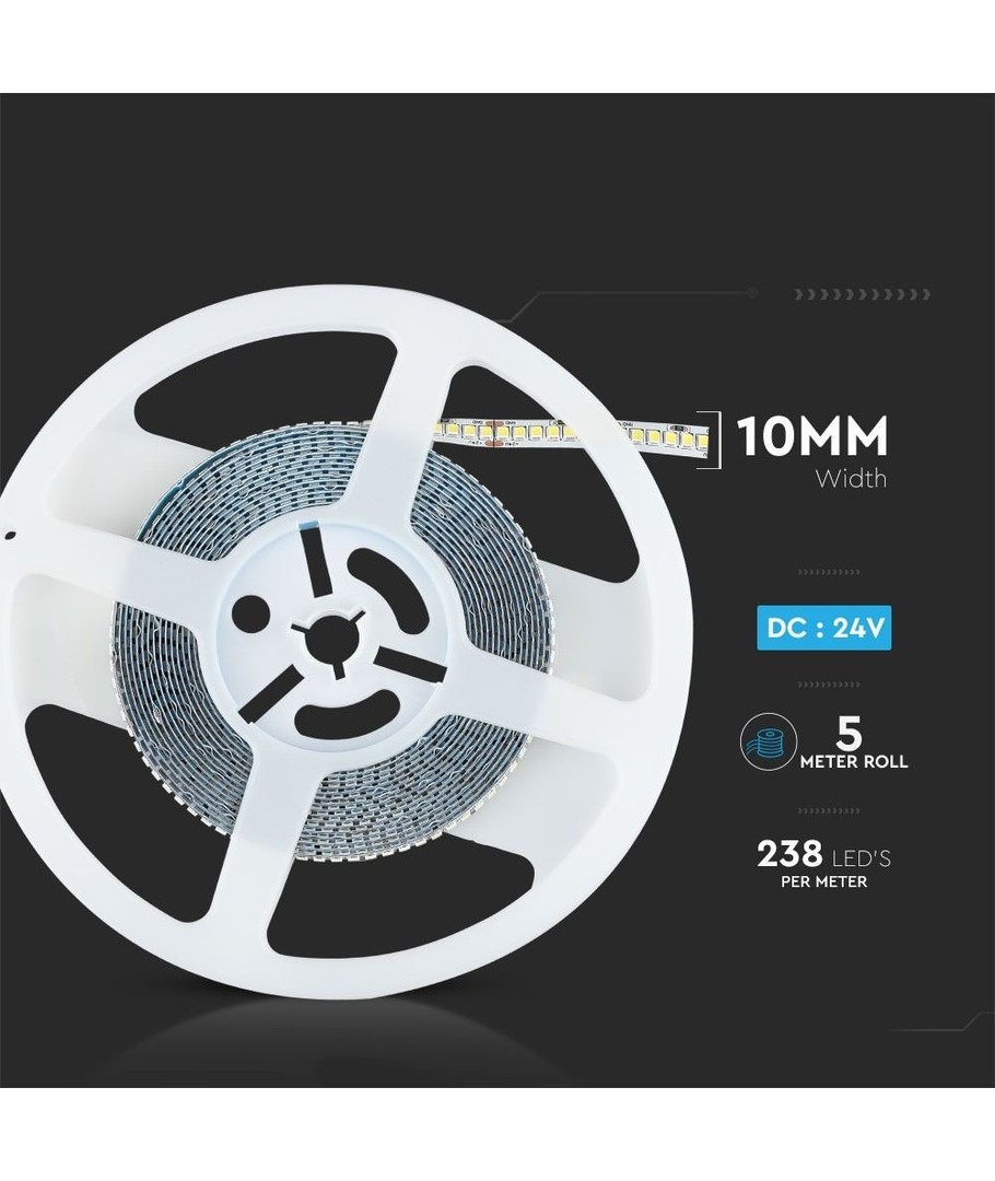 Denne LED strip er desuden dæmpbar, hvilket giver dig mulighed for at tilpasse lysstyrken efter dit behov og skabe den ønskede atmosfære. Med 238 LED'er pr. meter sikres en enestående lysoplevelse med en effektivitet på 150lm/W, der gør denne LED strip både økonomisk og miljøvenlig.