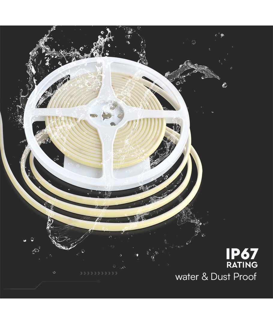 Oplev den alsidige COB-LED strip med en længde på 5 meter og en lysstyrke på 10W/meter. Denne LED strip er ideel til både indendørs og udendørs brug med sin IP67 vandtætte klassificering, hvilket gør den modstandsdygtig over for forskellige vejrforhold.