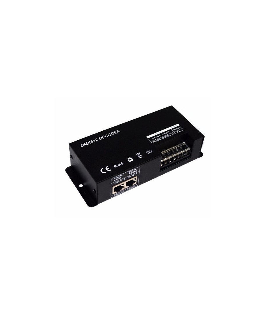 Denna DMX-dimmer har 4 utgångar och kan styras med annan kompatibel DMX-utrustning.