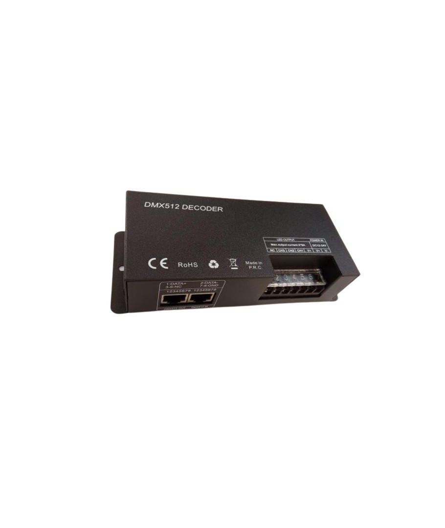 Denna DMX-dimmer har 4 utgångar och kan styras med annan kompatibel DMX-utrustning.